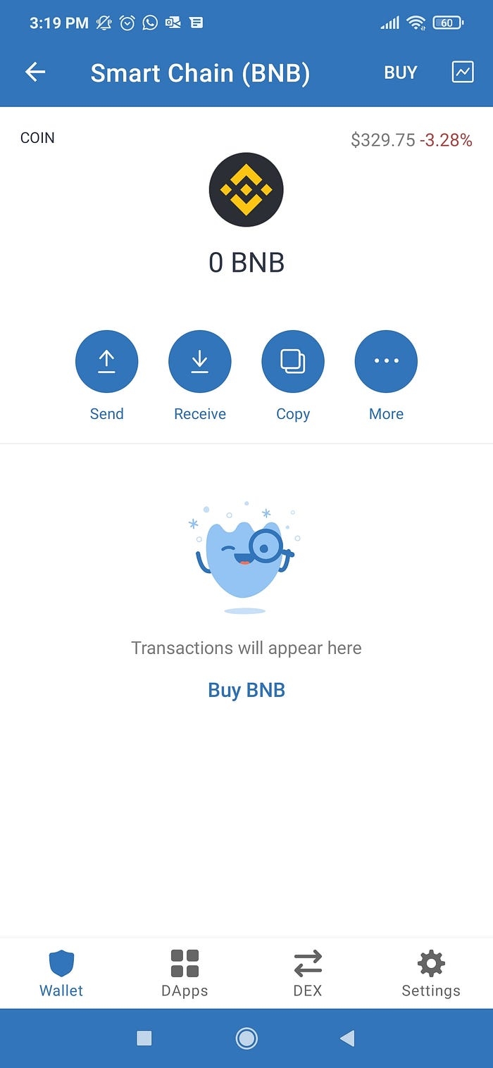 2) Tap on “Copy”. Your wallet’s address in the Binance Smart Chain is copied.